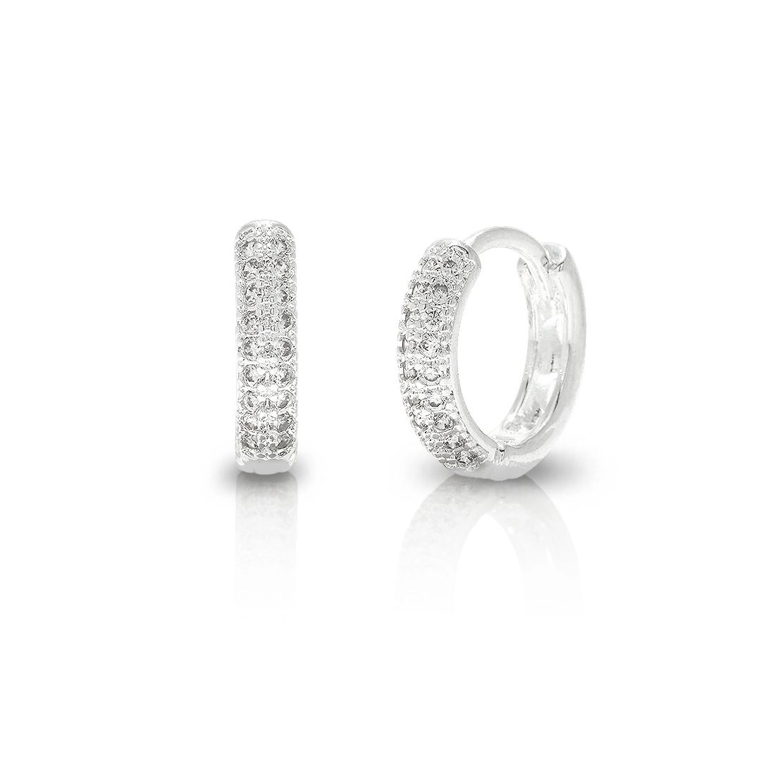 Brinco de argola clic com zircônias cristal em tamanho P.