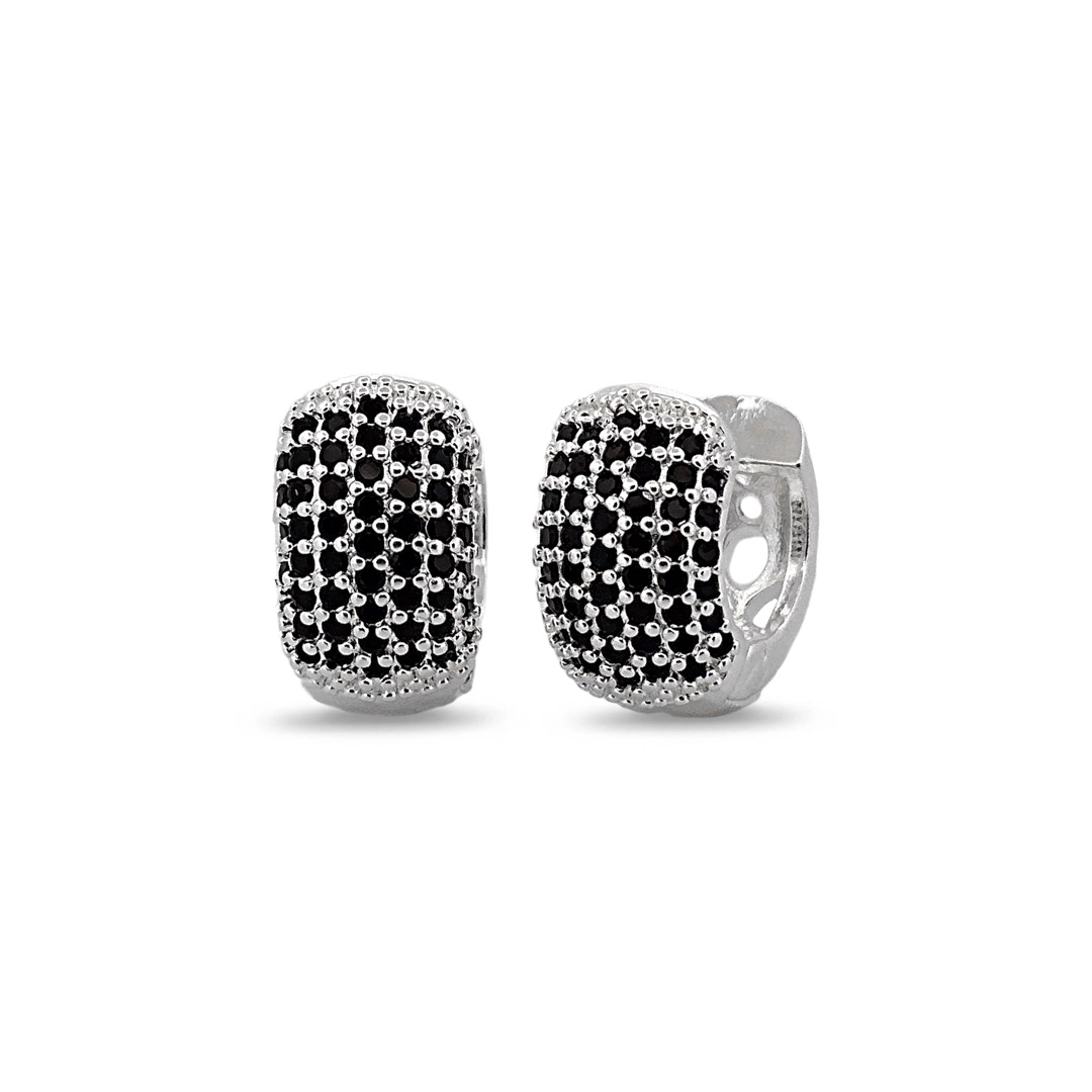 Brinco De Prata Leve Argola Clic com Zircônias Ônix M