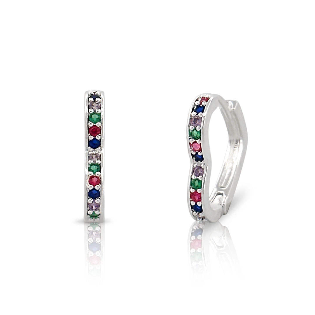 Brinco de Prata Leve Argola Clic Coração com Zircônias Coloridas