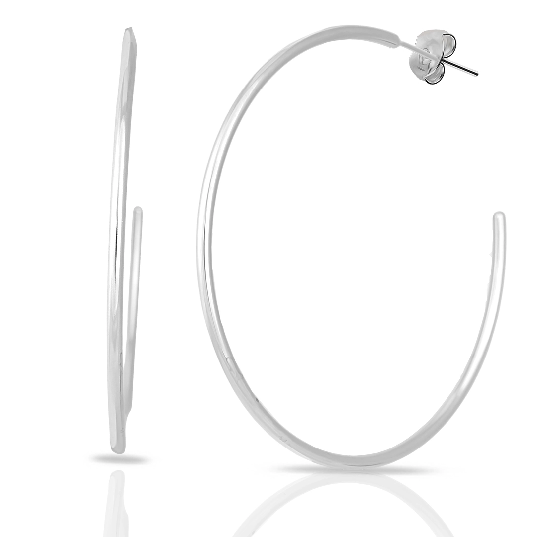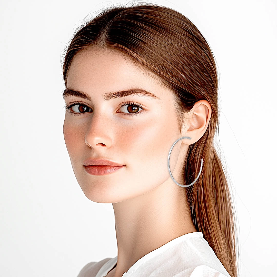 Brinco argola com fio roliço espelhado.