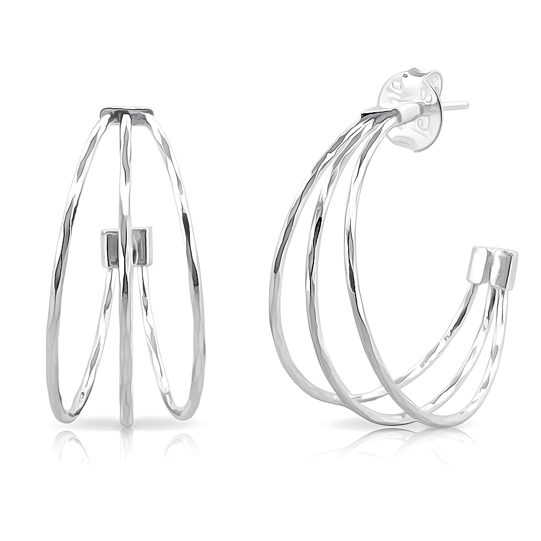 Brinco de Prata Leve Argola com Três Fios Diamantados