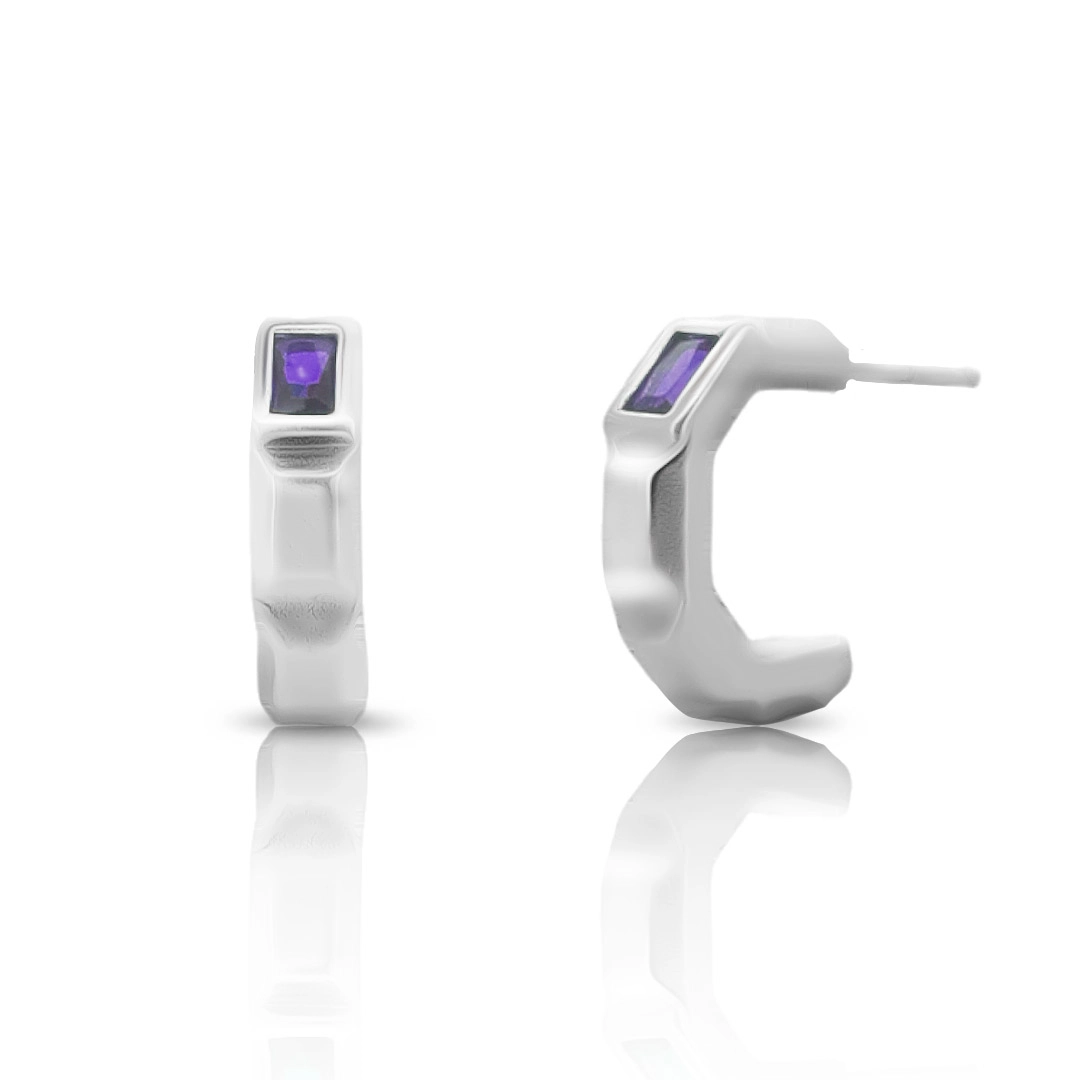 Brinco De Prata Leve Argola com Zircônia Ametista