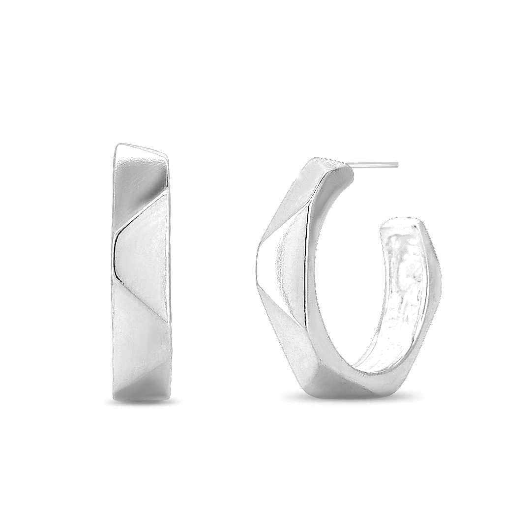 Brinco argola espelhada e facetada.