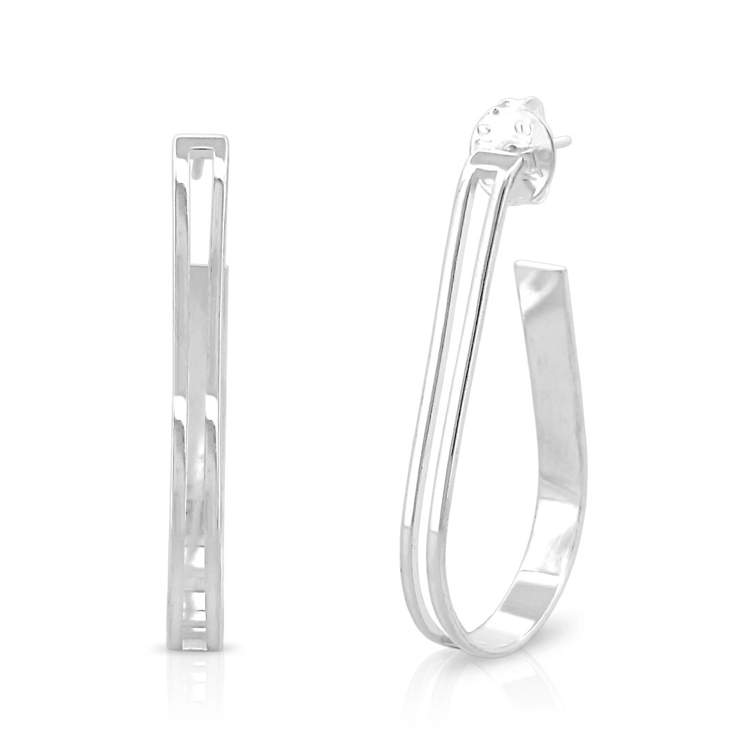 Brinco de Prata Leve Argola Gota Fio Quadrado Vazado