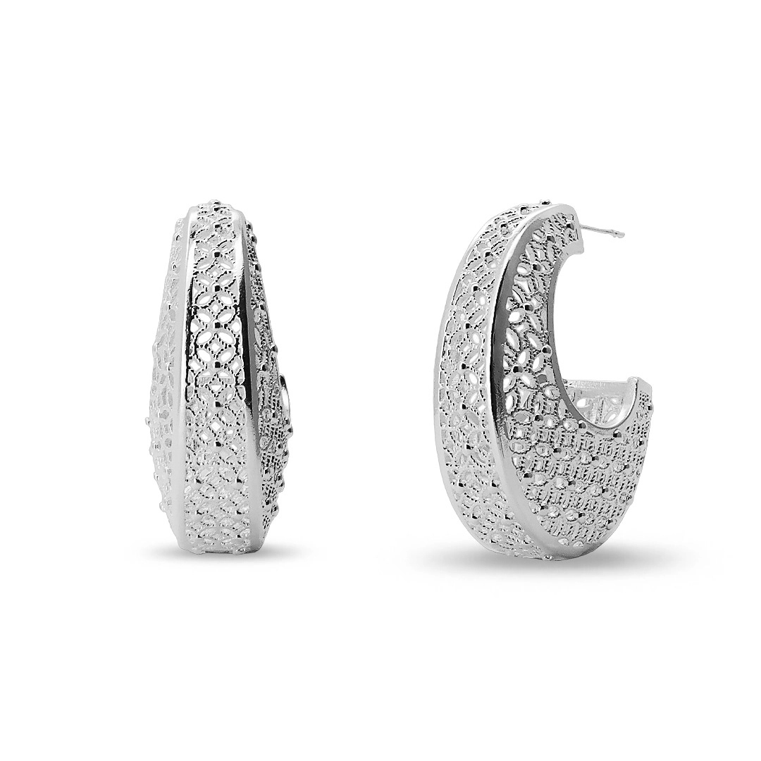 Brinco de argola com trabalhado vazado.