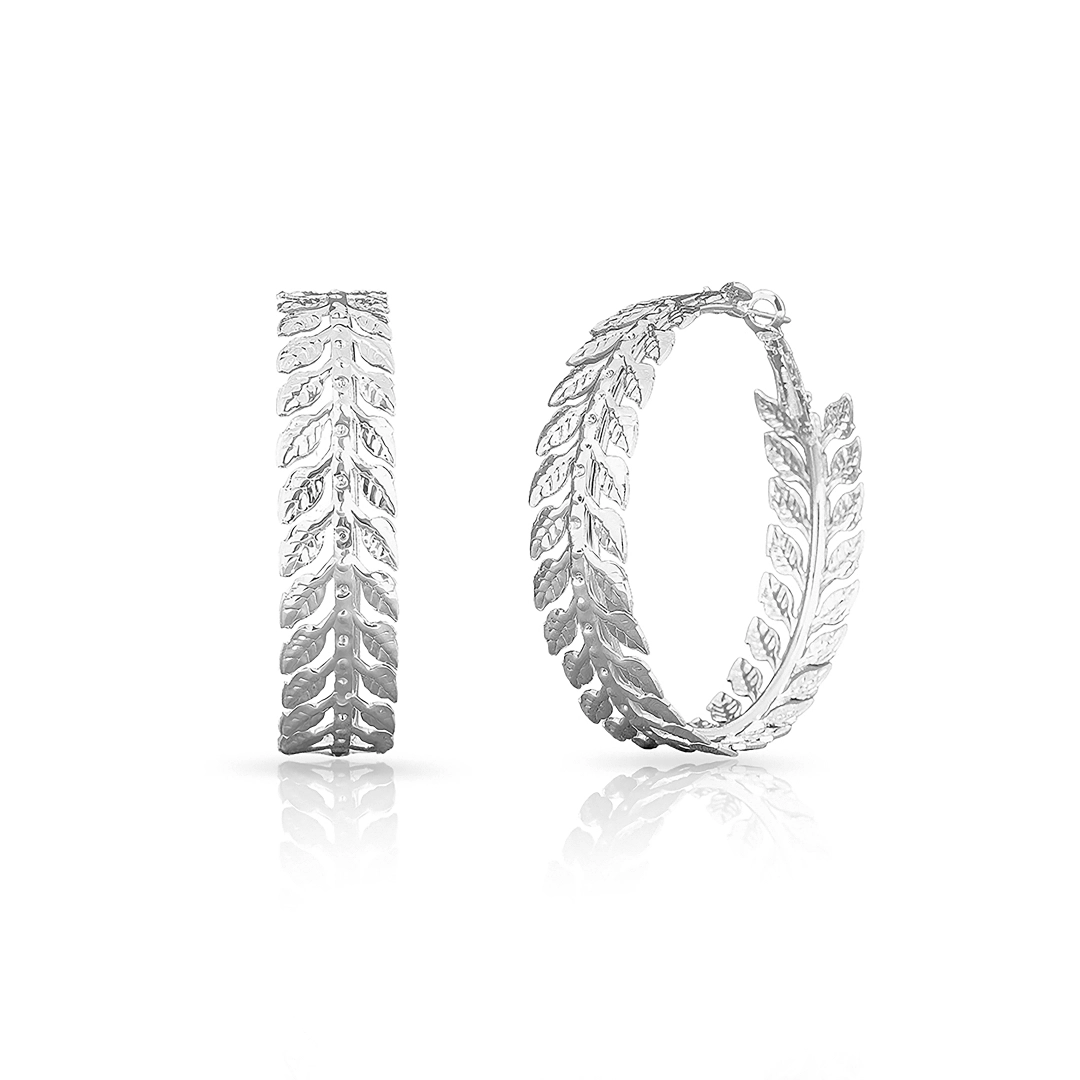 Brinco de Prata Leve Argola Trabalhada com Folhas