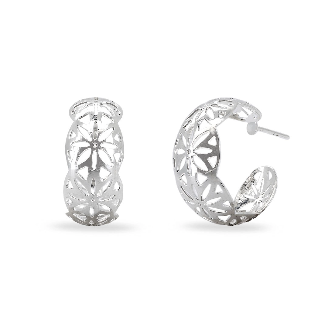 Brinco De Prata Leve Argola Trabalhada e Vazada