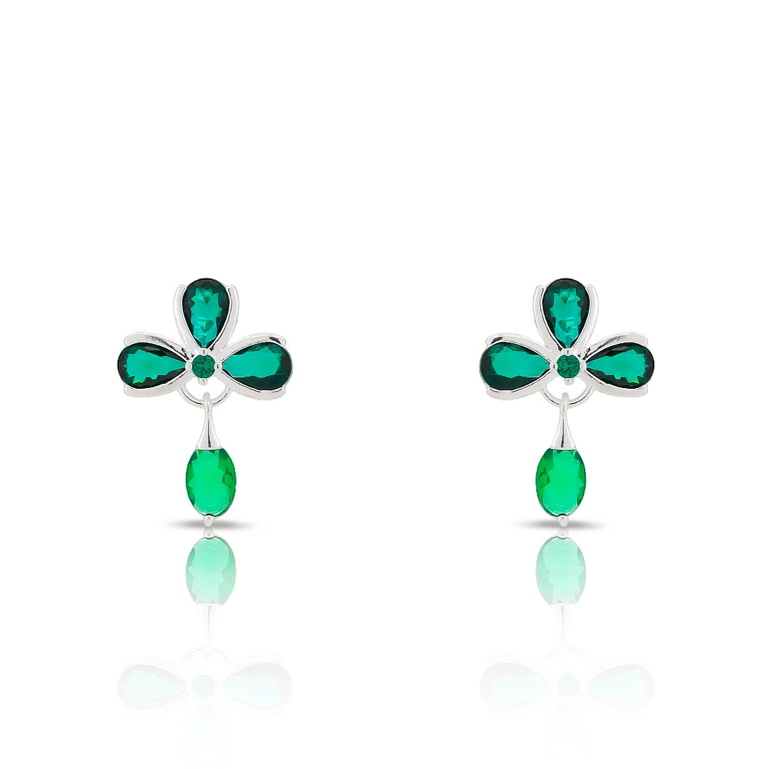 Brinco De Prata Leve Balanço com Zircônia Esmeralda