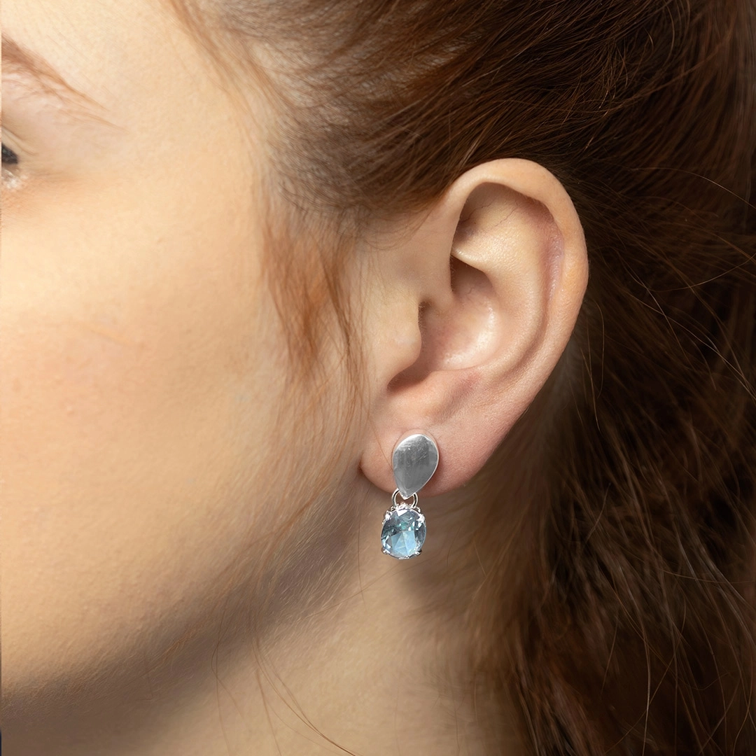 Brinco De Prata Leve Balanço Com Zircônia Topázio Oval
