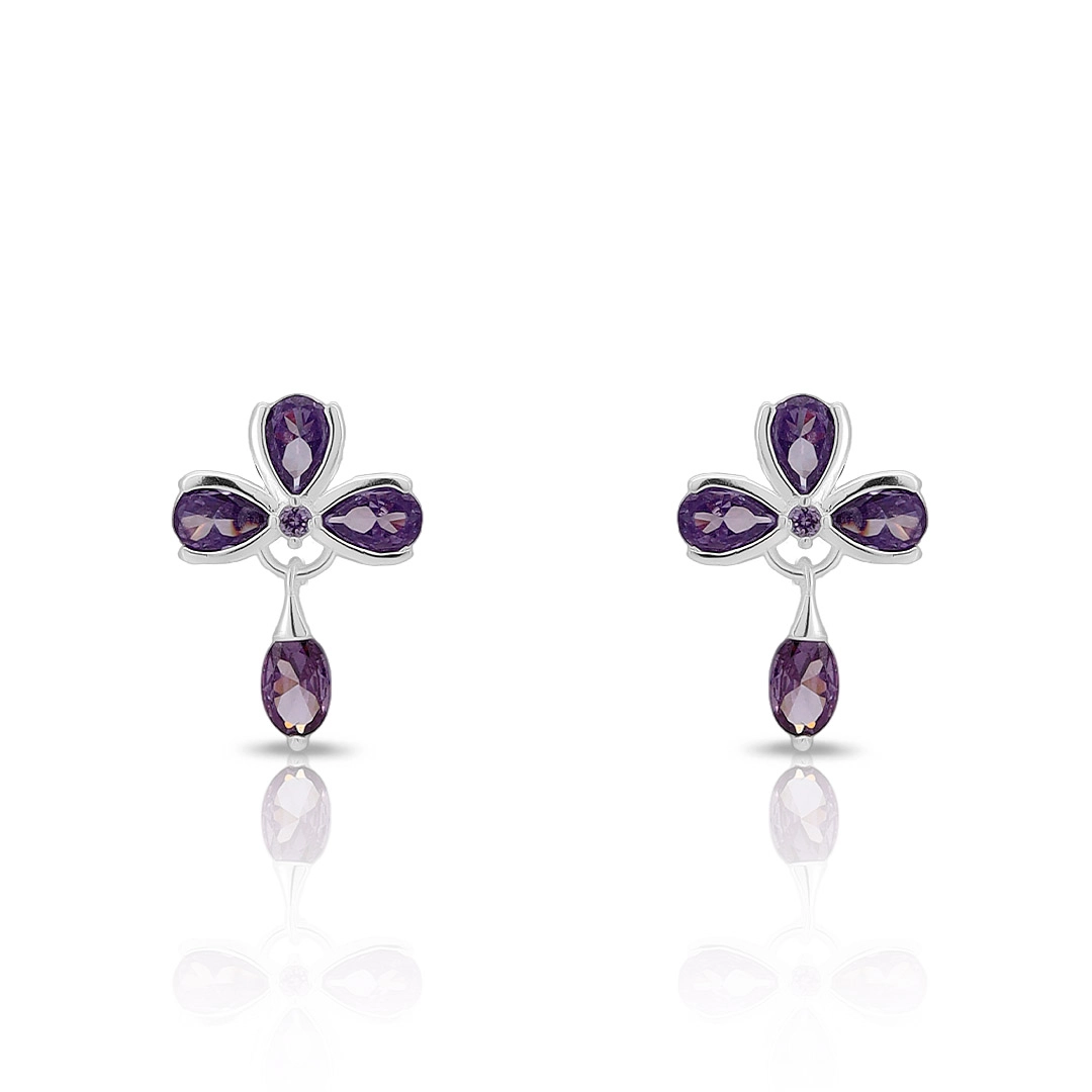 Brinco De Prata Leve Balanço com Zircônias Ametista