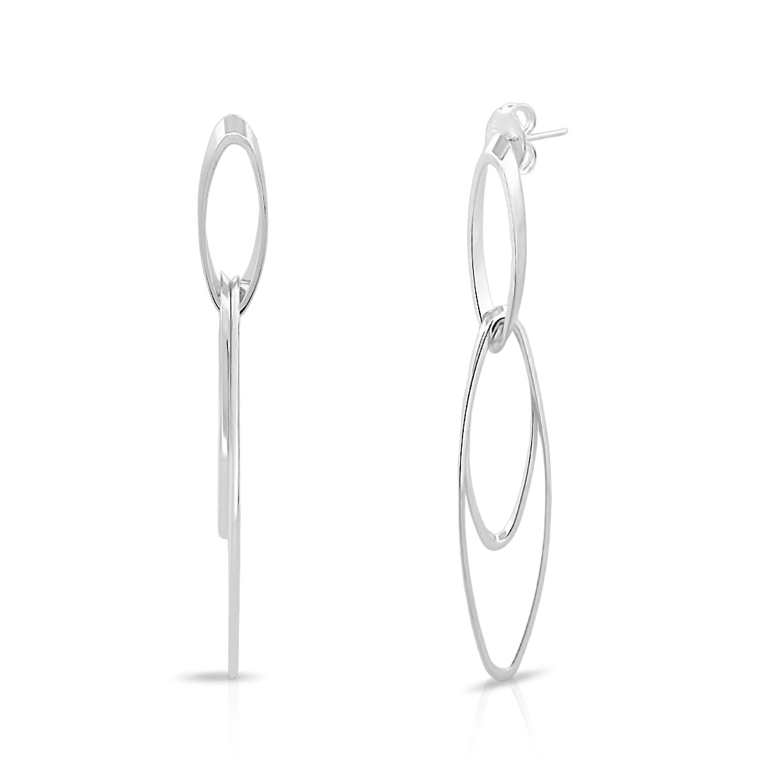 Brinco de Prata Leve Balanço Elos Ovais Espelhados