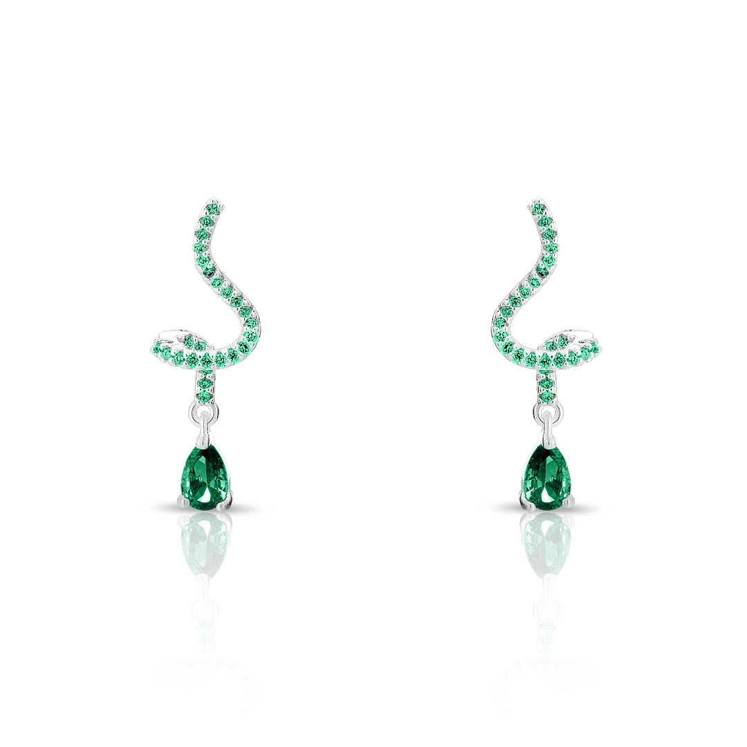 Brinco de Prata Leve Balanço Gota com Zircônia Esmeralda