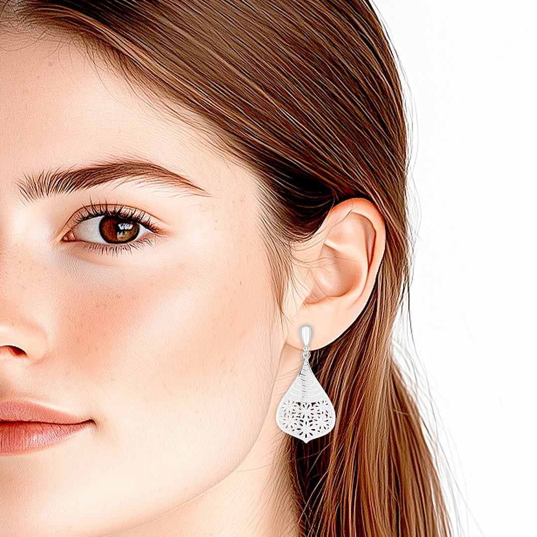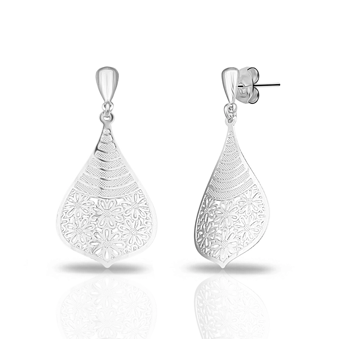 Brinco de Prata Leve Balanço Gota Indiana com Flores