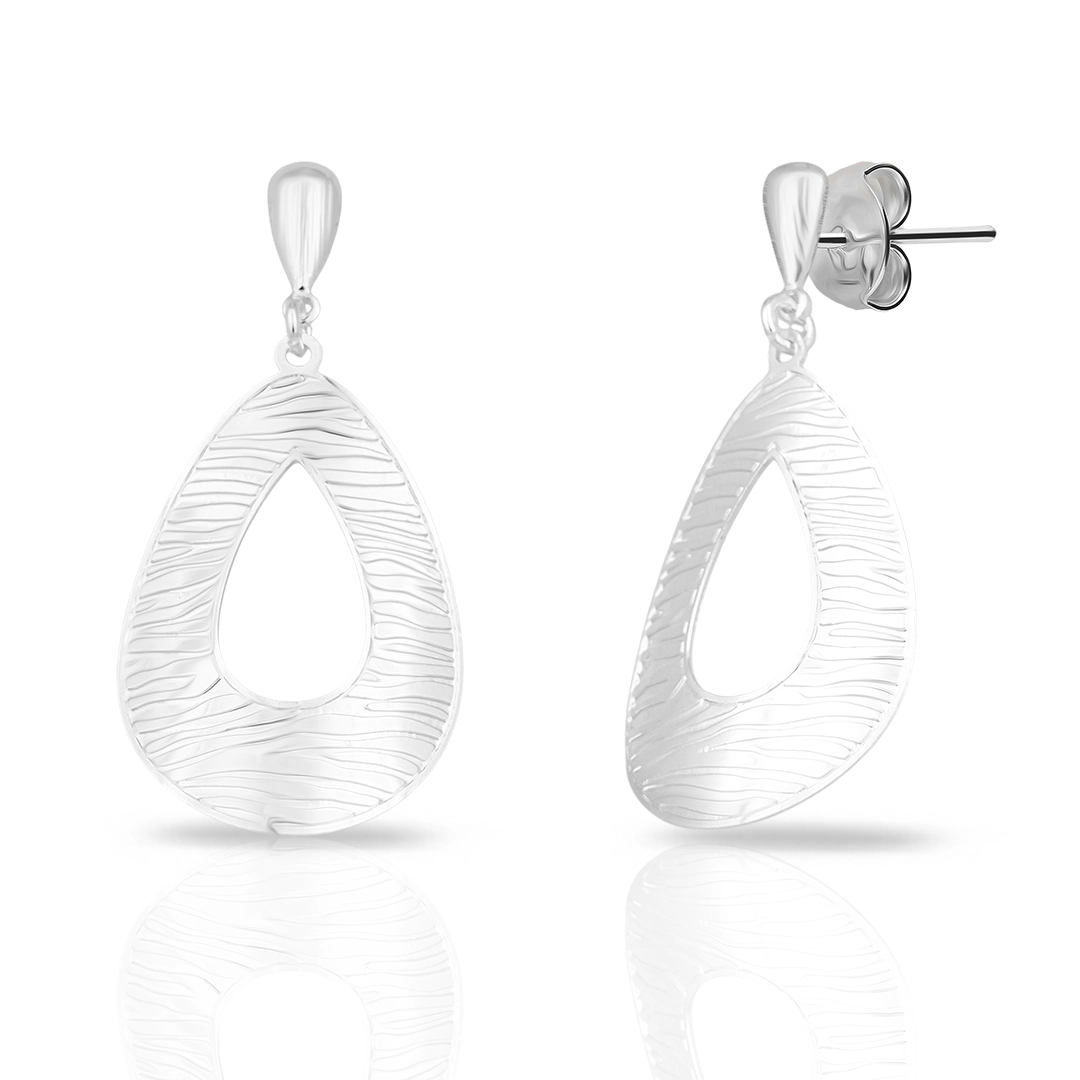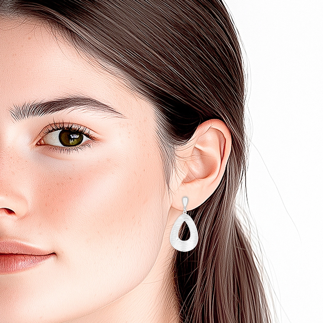 Brinco de Prata Leve Balanço Gota Vazada com Trabalhado Fosco