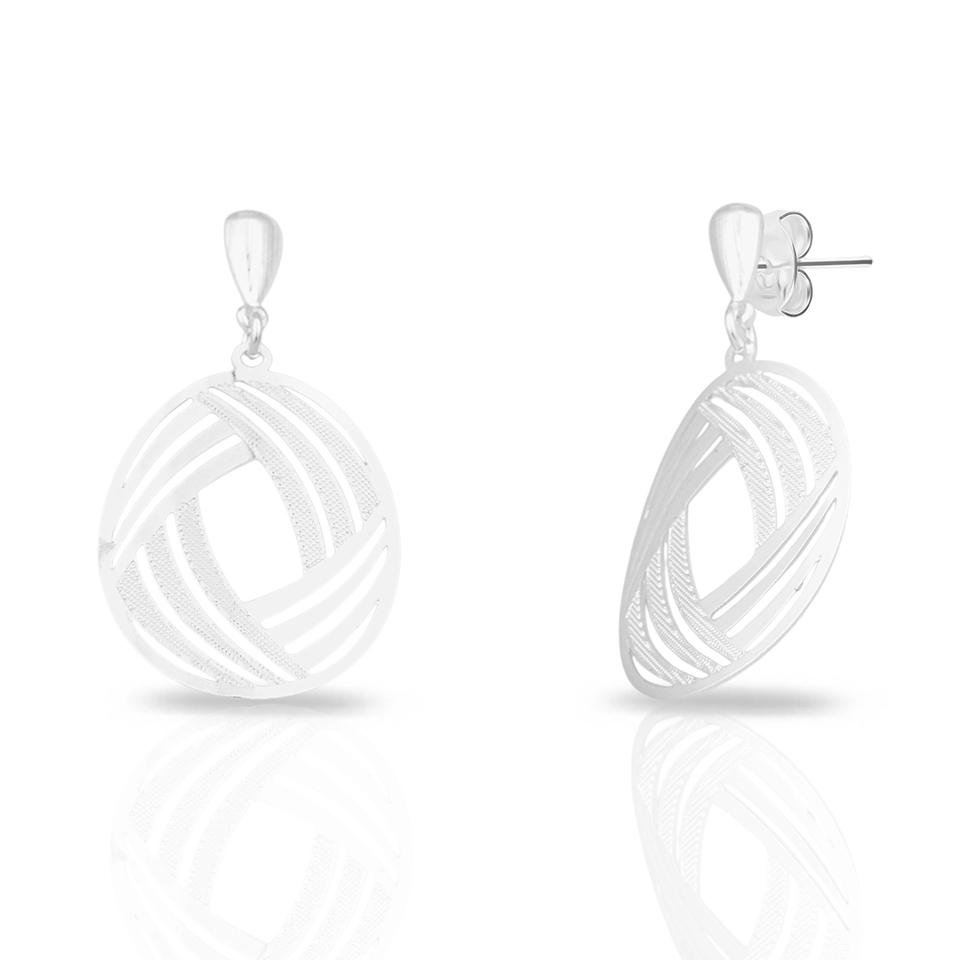 Brinco de Prata Leve Balanço Oval com Trabalhado Vazado