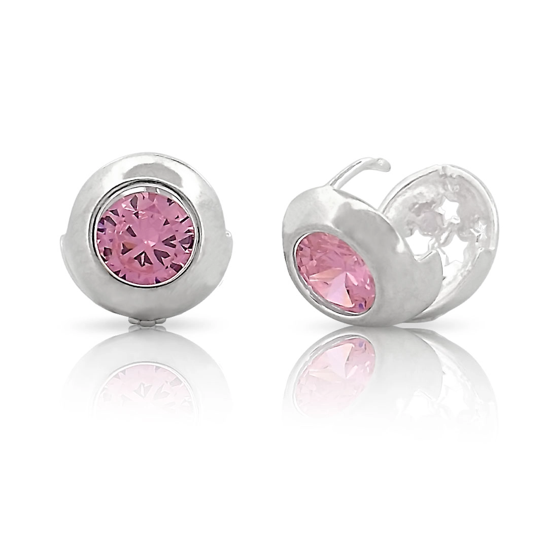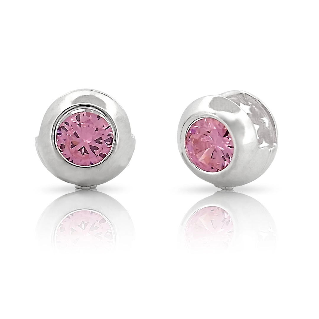 Brinco clic redondo com zircônia rosa.