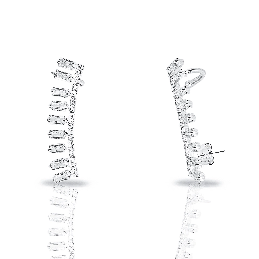 Brinco de Prata Leve Ear Cuff com Zircônias Cristal Retangulares