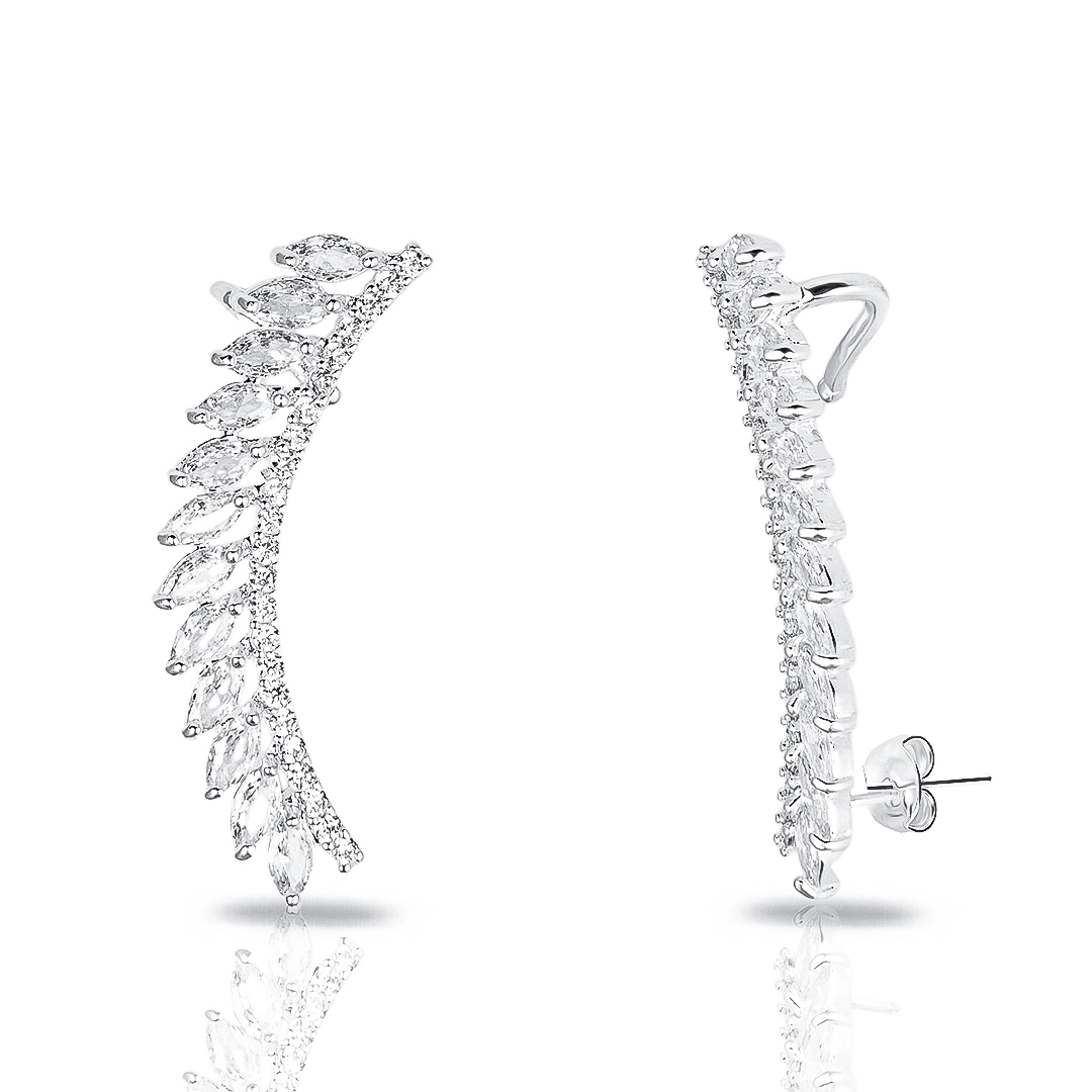 Brinco de Prata Leve Ear Cuff com Zircônias Navetes