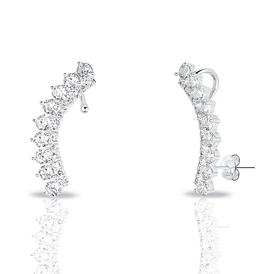 Brinco de Prata Leve Ear Cuff com Zircônias Redondas