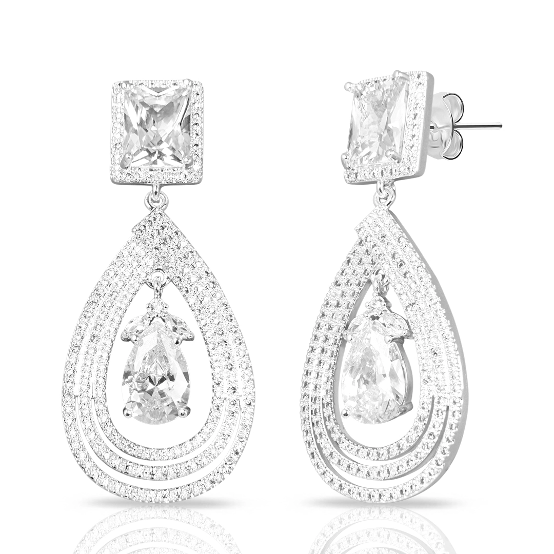 Brinco de Prata Leve Linha Festa Balanço Gotas com Zircônias Cristal