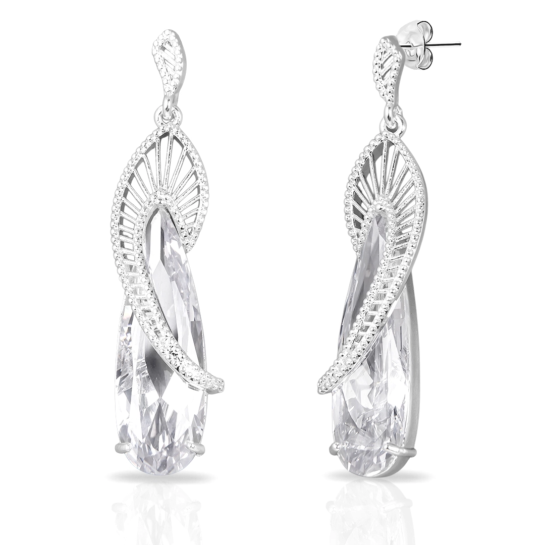 Brinco de Prata Leve Linha Festa Balanço Trabalhado com Zircônias