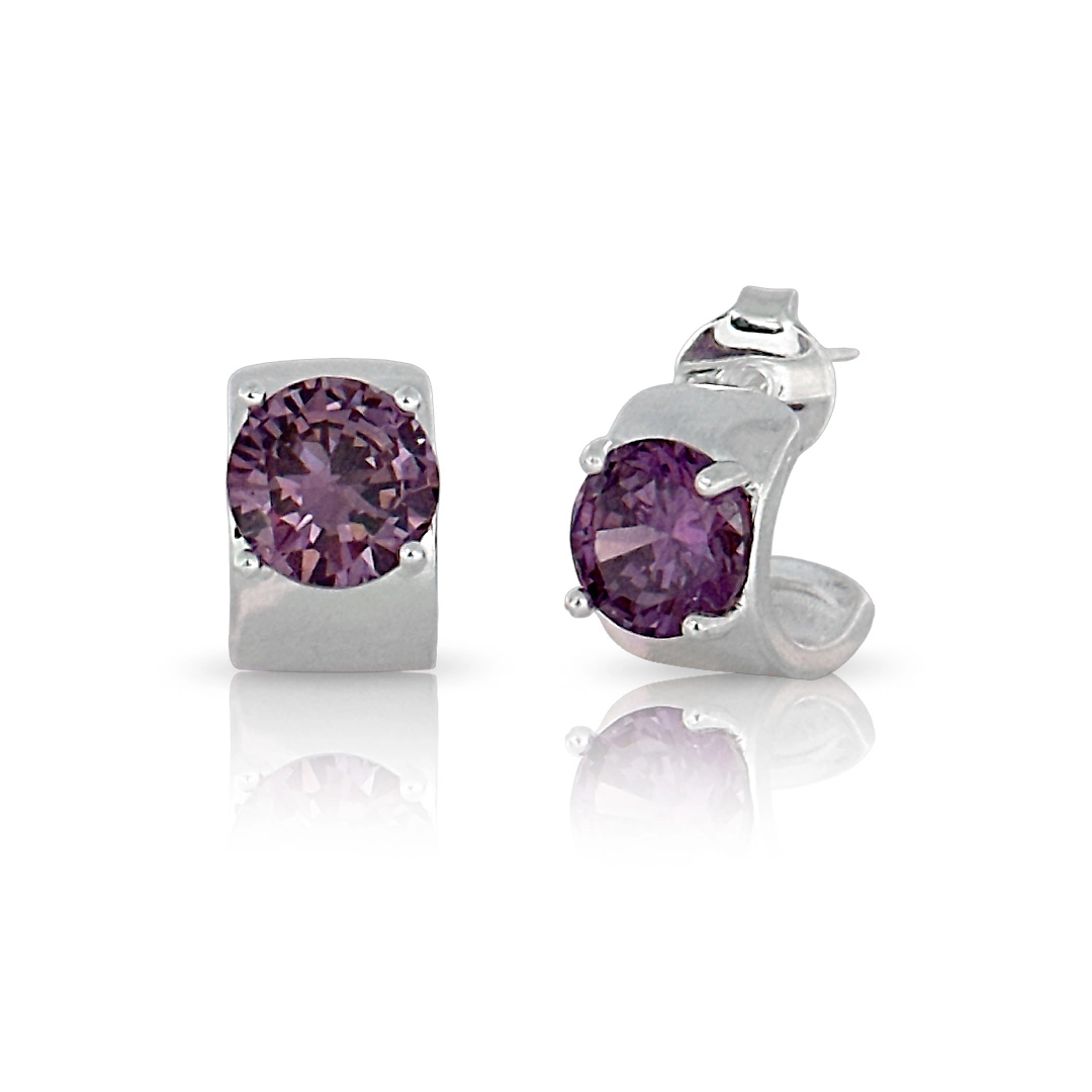 Brinco de Prata Leve Meia Argola com Zircônia Ametista