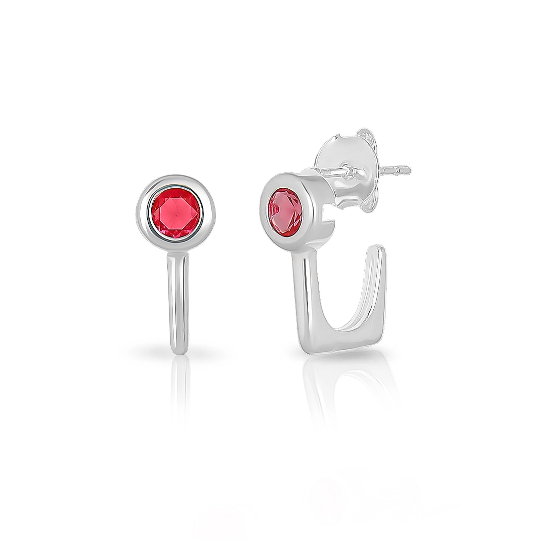 Brinco meia argola de zircônia rubi com tarraxa.