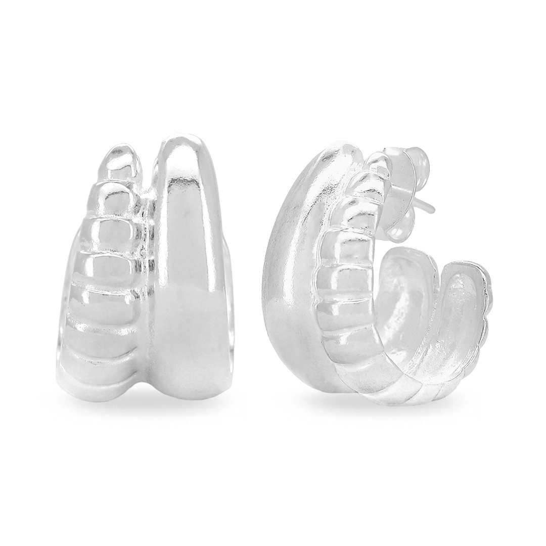 Brinco De Prata Leve Meia Argola Dupla Trabalhada