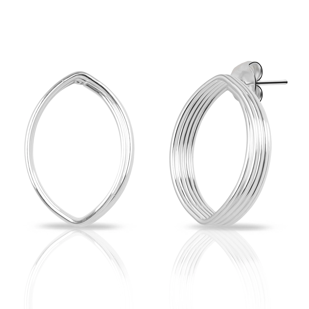Brinco de Prata Leve Navete Com Fios Espelhados