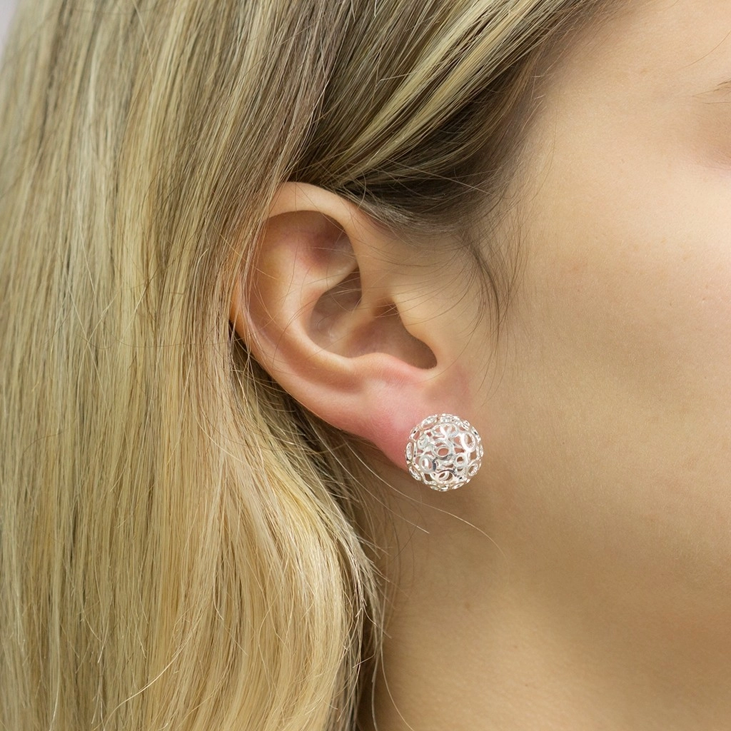 Brinco de Prata Leve Top Esfera Vazada