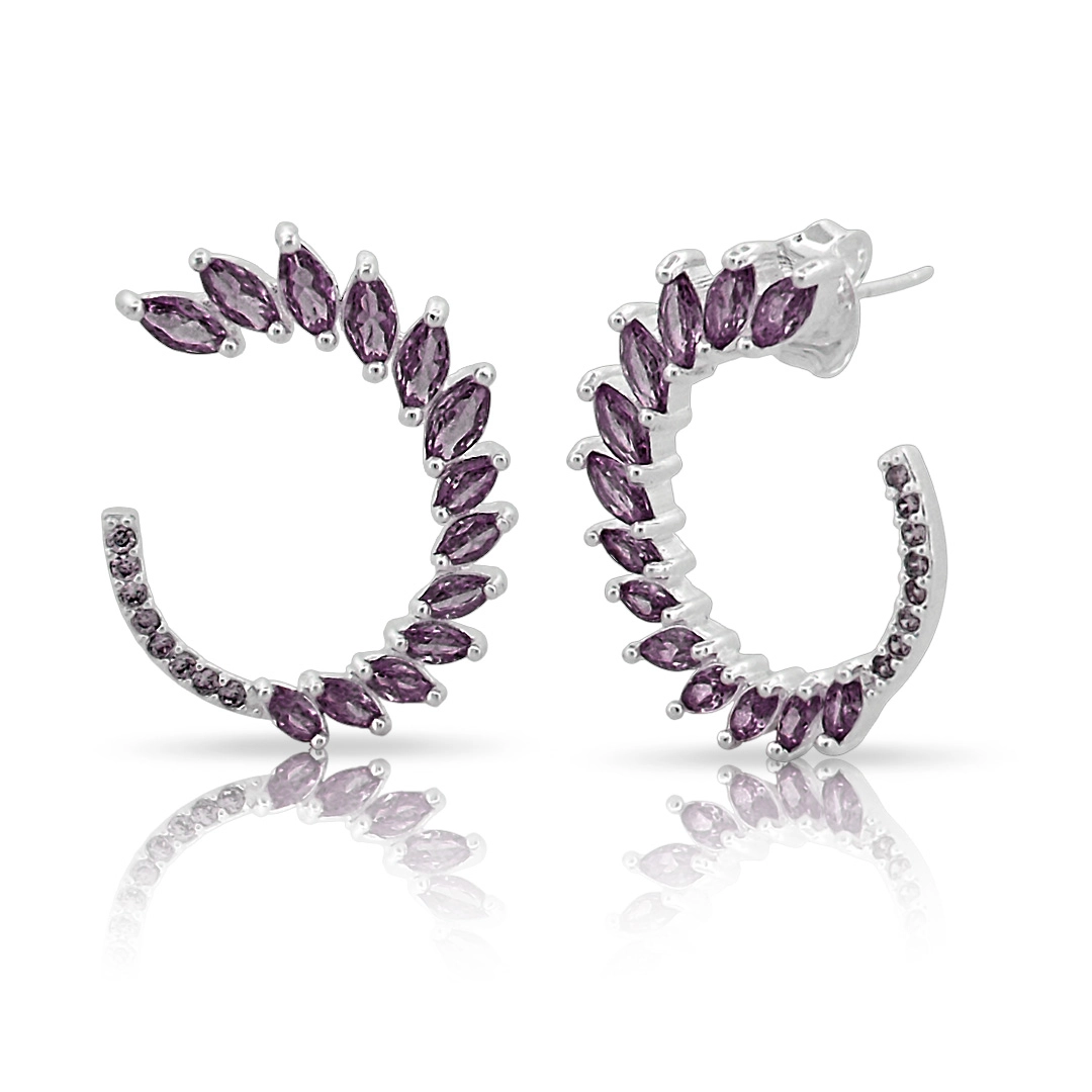 Brinco de Prata Leve Top Círculo com Zircônia Ametista Navete
