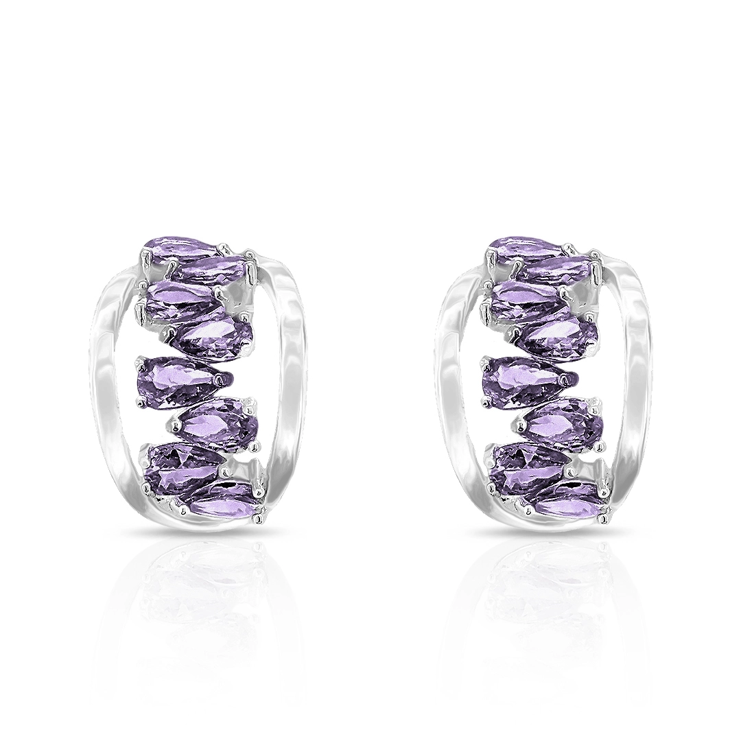 Brinco de Prata Leve Top com Zircônia Ametista