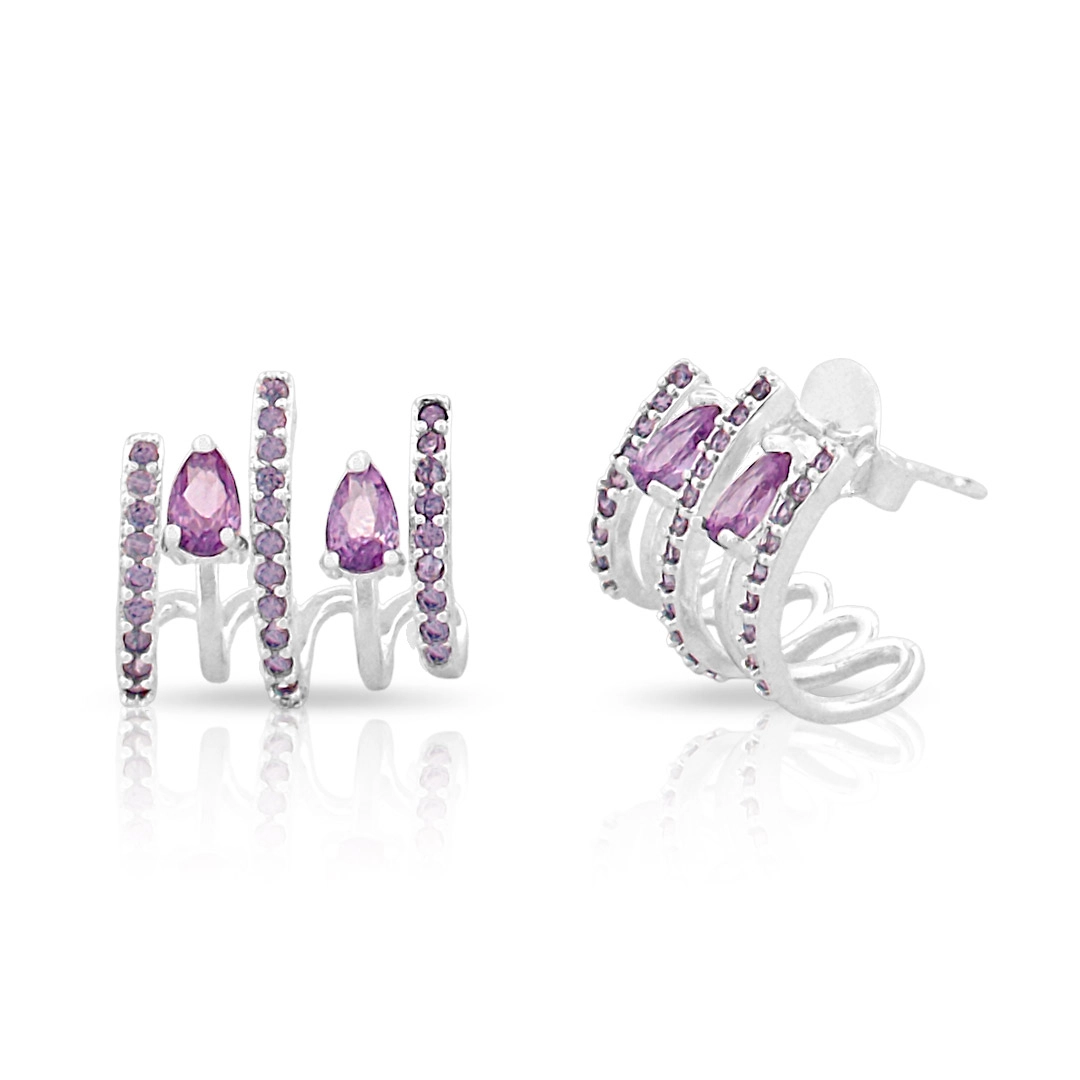 Brinco top com cinco fios de zircônias ametista cravejadas.