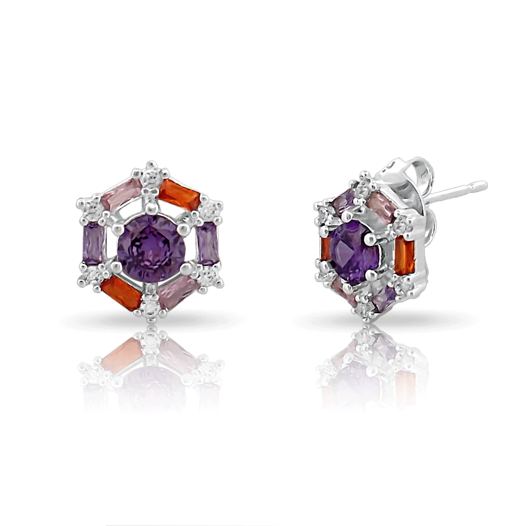 Brinco de Prata Leve Top com Zircônias Coloridas