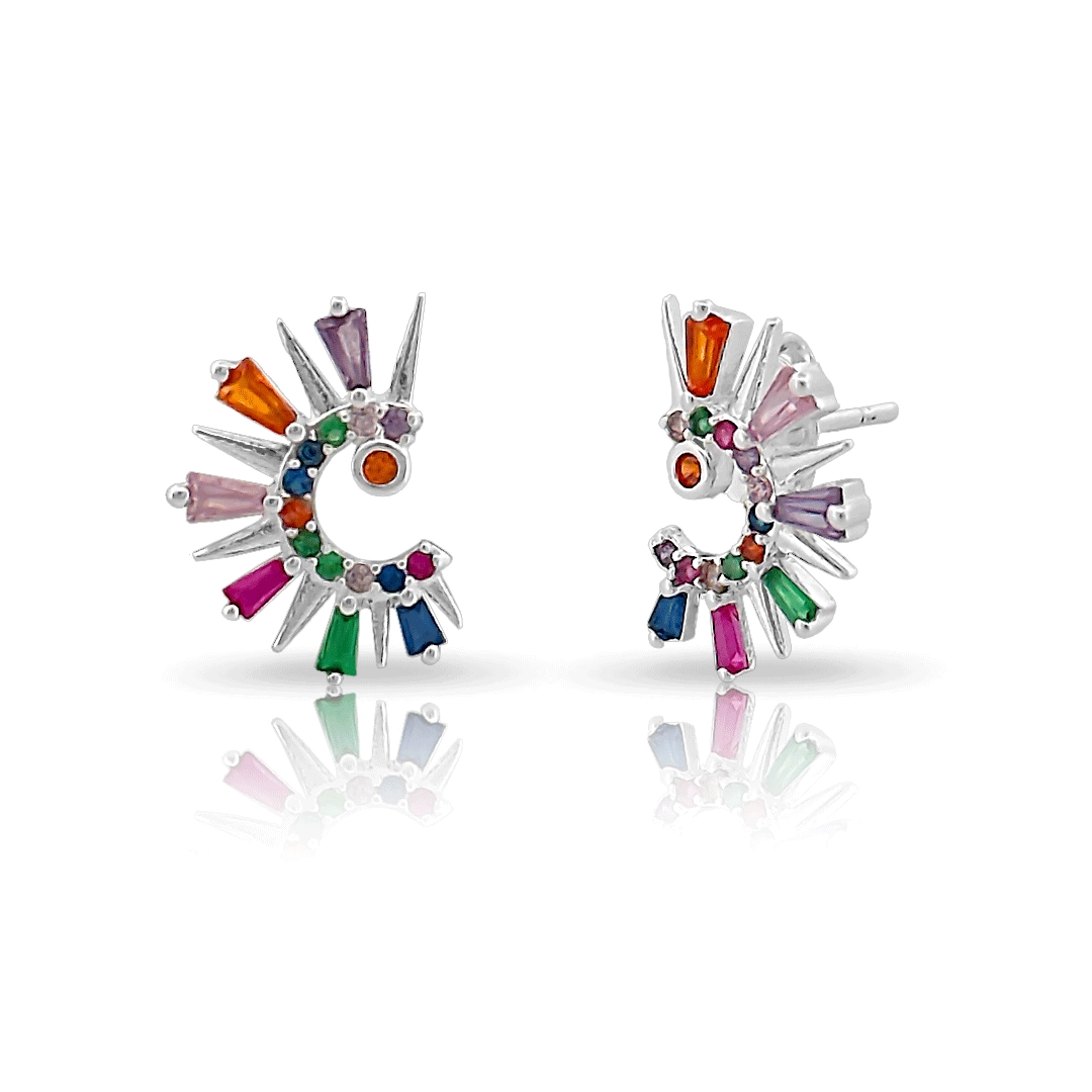 Brinco de Prata Leve Top com Zircônias Coloridas