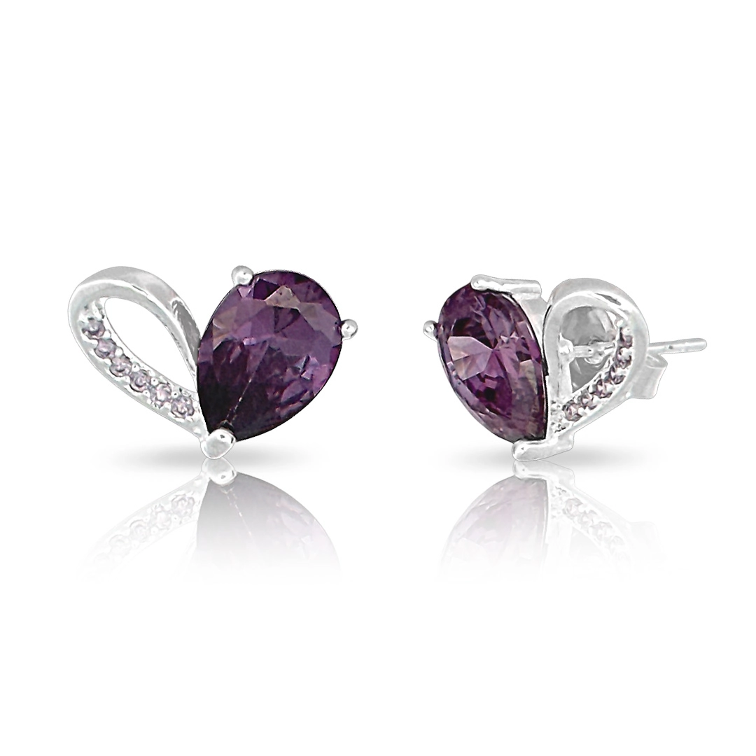 Brinco de Prata Leve Top Coração com Zircônia Ametista