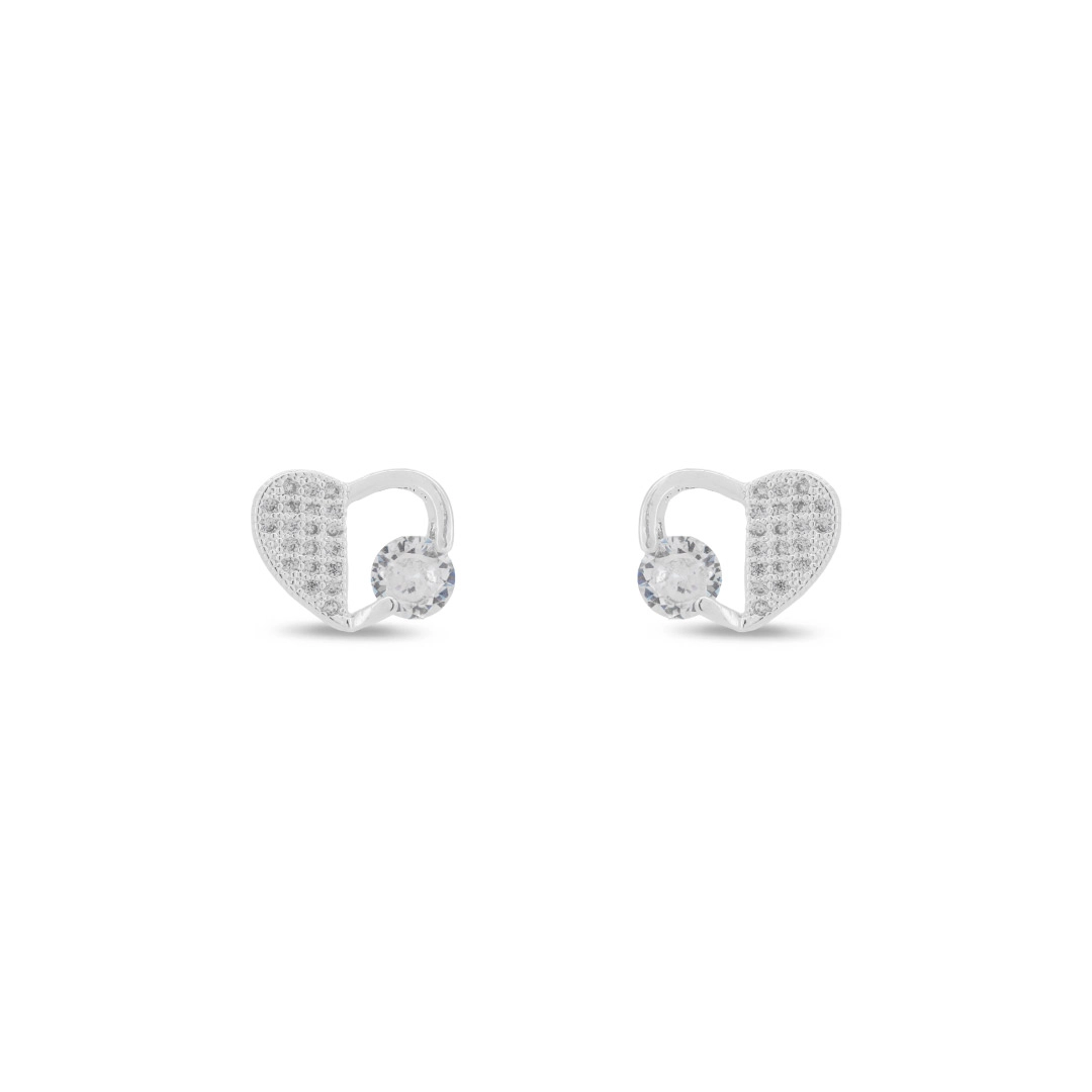 Brinco top em formato de coração com zircônias cristal.