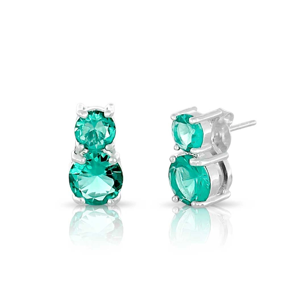 Brinco top duplo com zircônia esmeralda redonda.