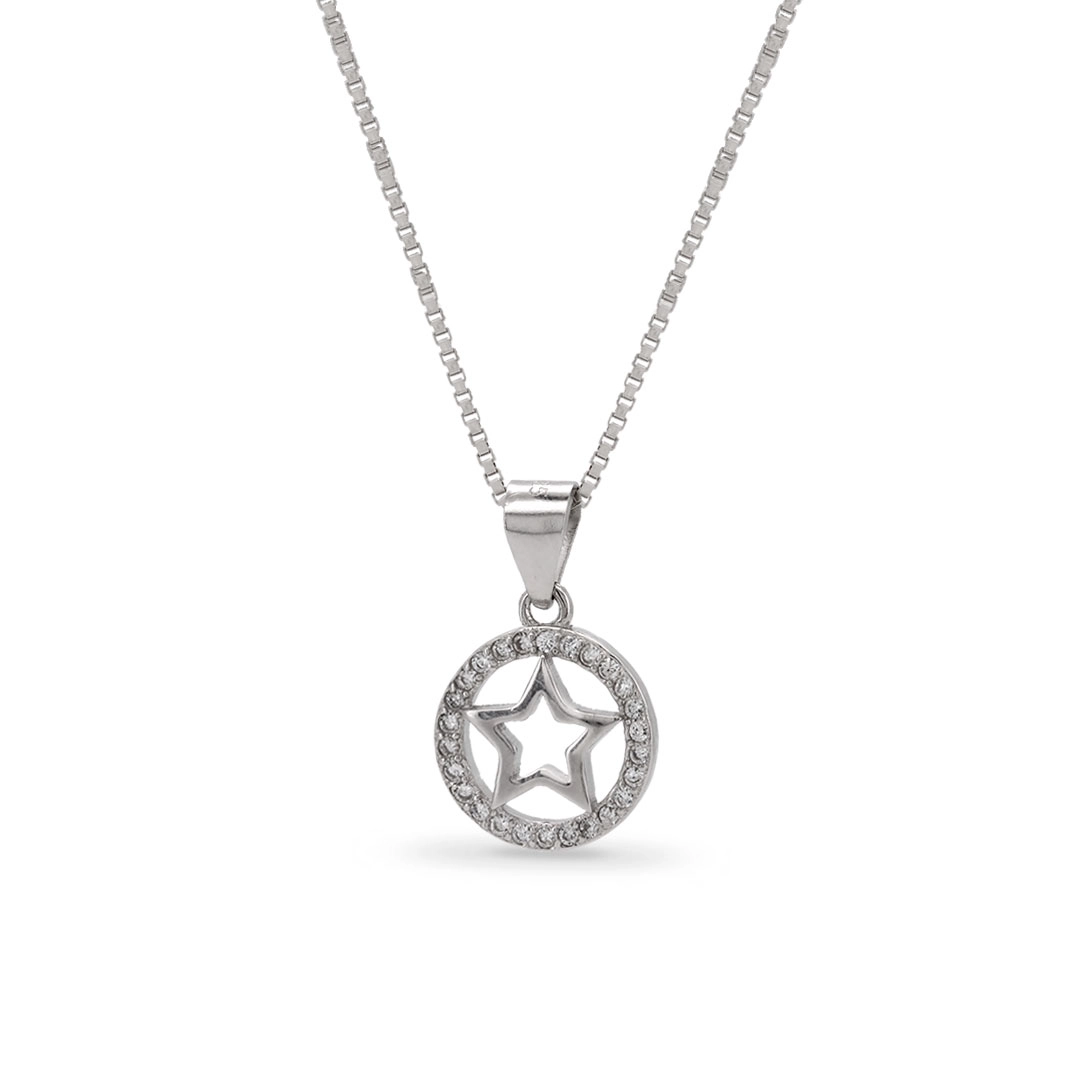 Gargantilha De Prata Círculo com Estrela e Zircônia Cristal