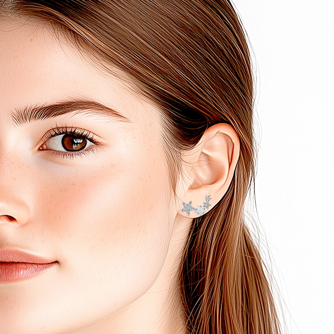 Brinco de Prata Leve Top Estrelas com Zircônia Cristal