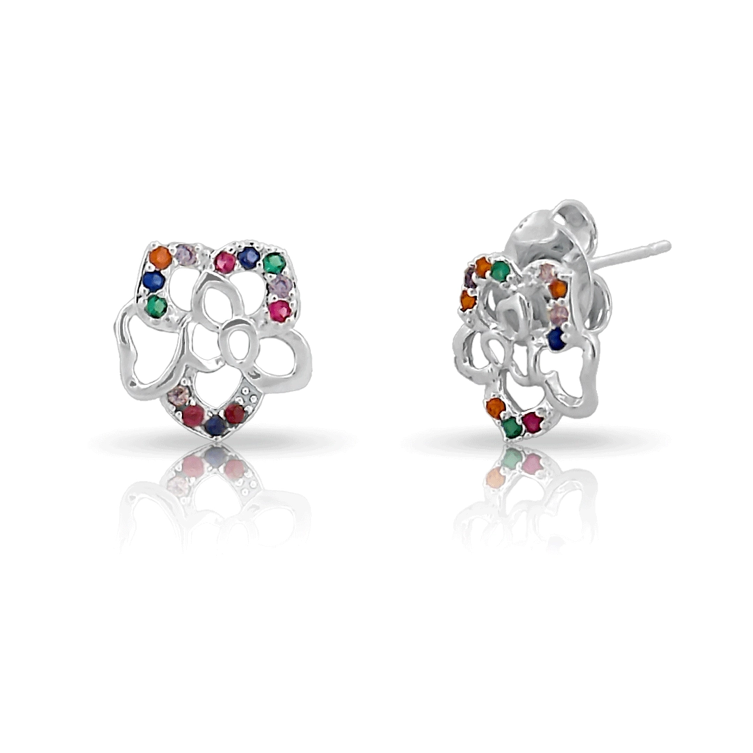 Brinco de Prata Leve Top Flor Estilizada com Zircônias Coloridas