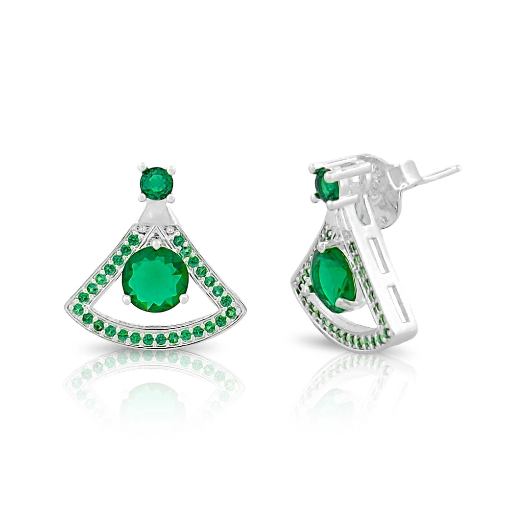 Brinco de Prata Leve Top Leque Com Zircônias Esmeralda