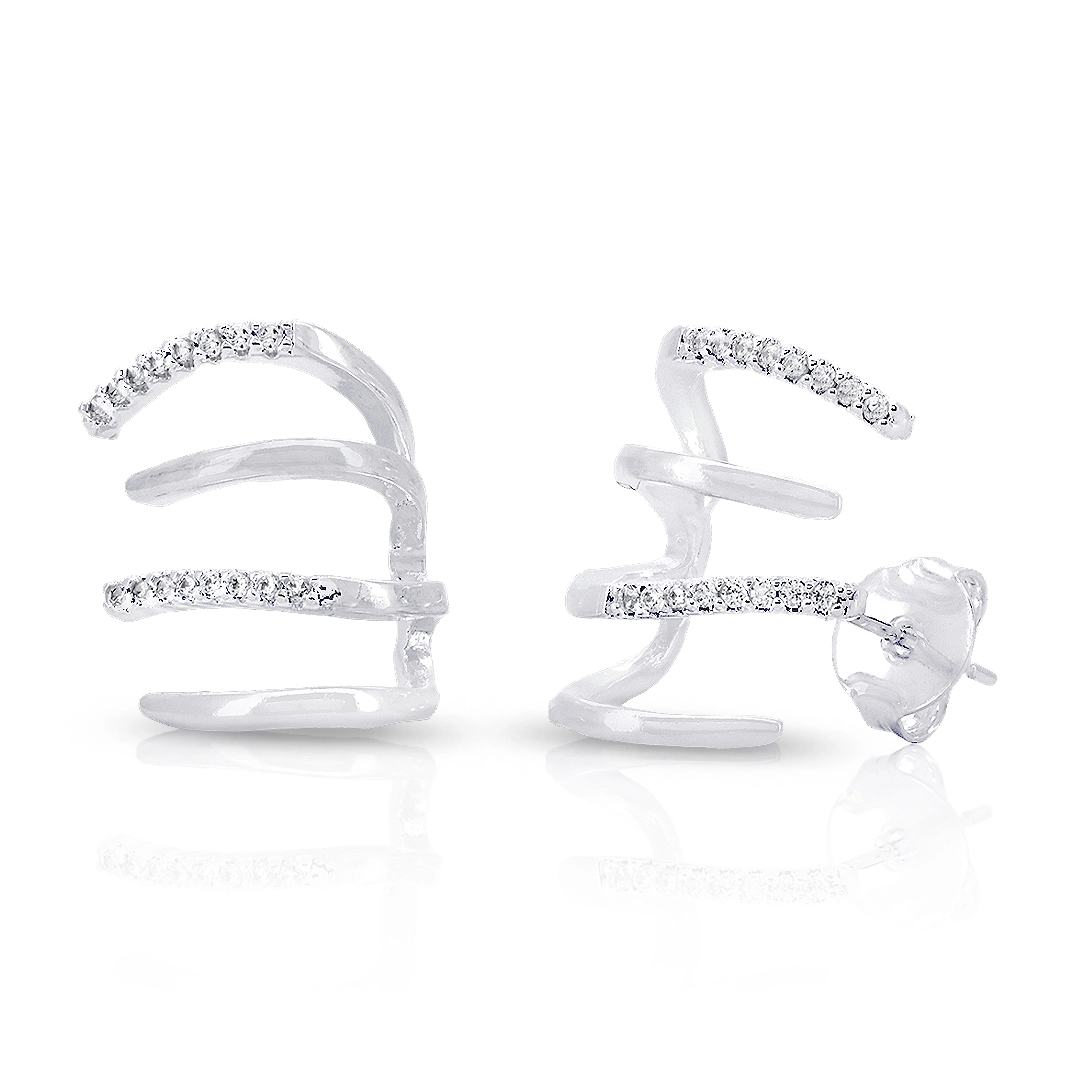 Brinco de Prata Leve Top Quatro Fios com Zircônias