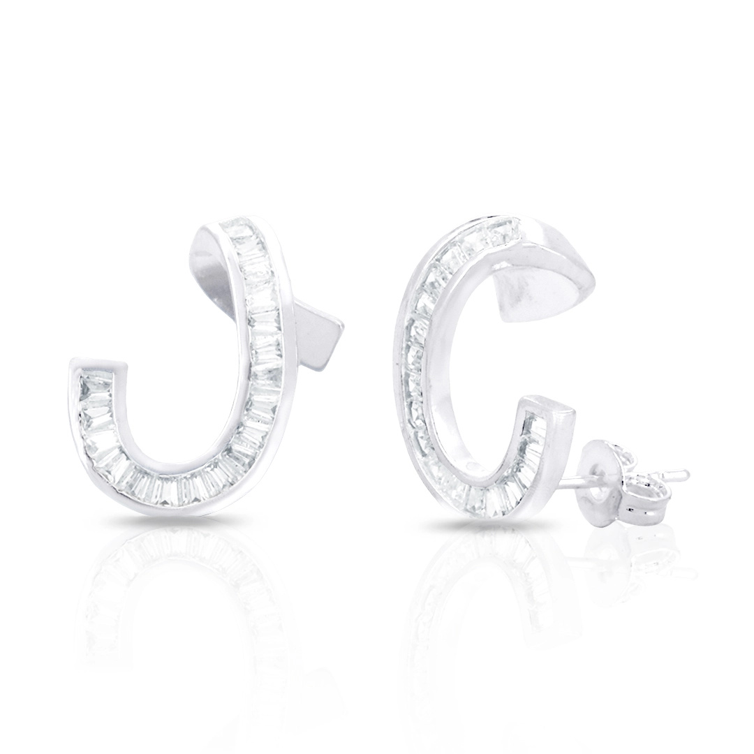 Brinco de Prata Leve Top Trabalhado com Zircônias Cristal Retangulares