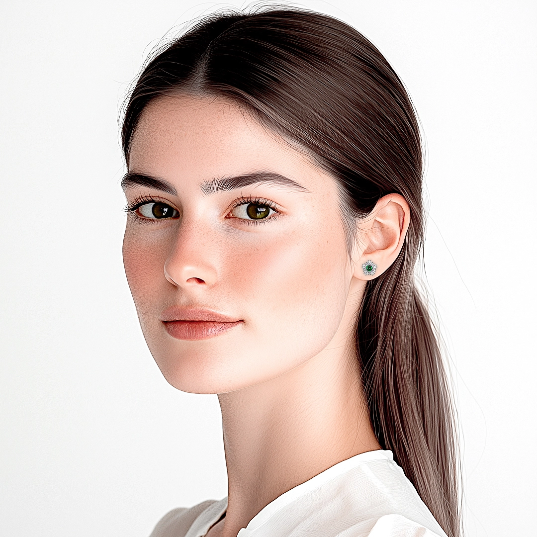 Brinco de Prata Top Blend Collection Redondo com Zircônias Esmeralda e Cristal