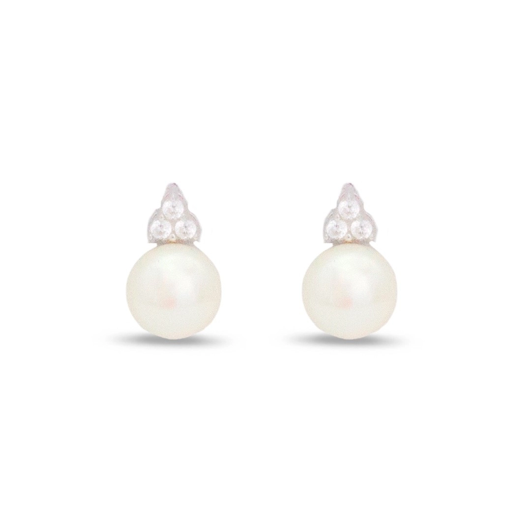 Brinco de Prata Top com Pérola Biwa e Zircônia Cristal