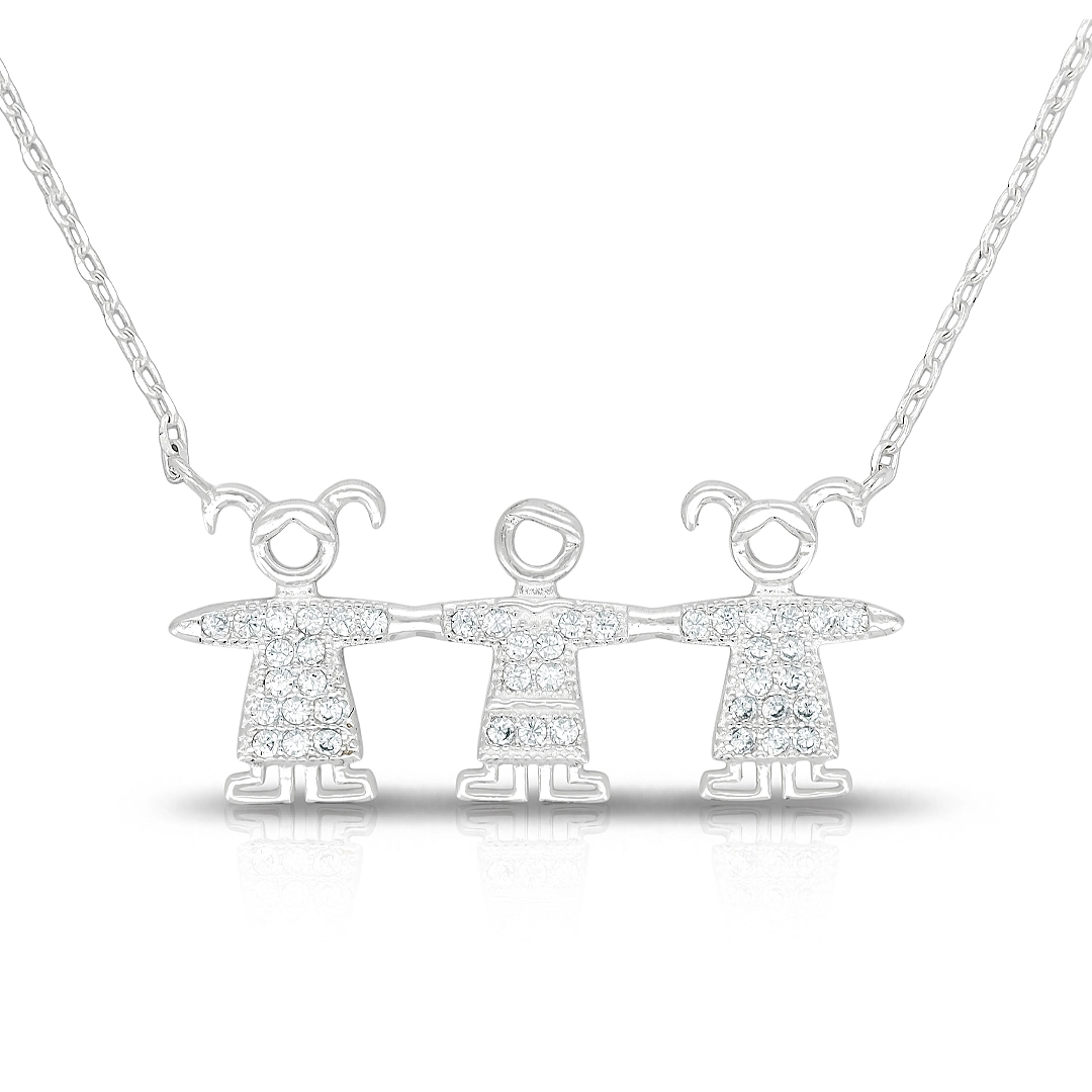Gargantilha de Prata Meninas com Menino e Zircônia Cristal