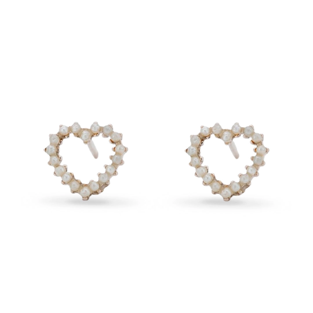 Brinco top coração com micro pérolas sintetizadas.