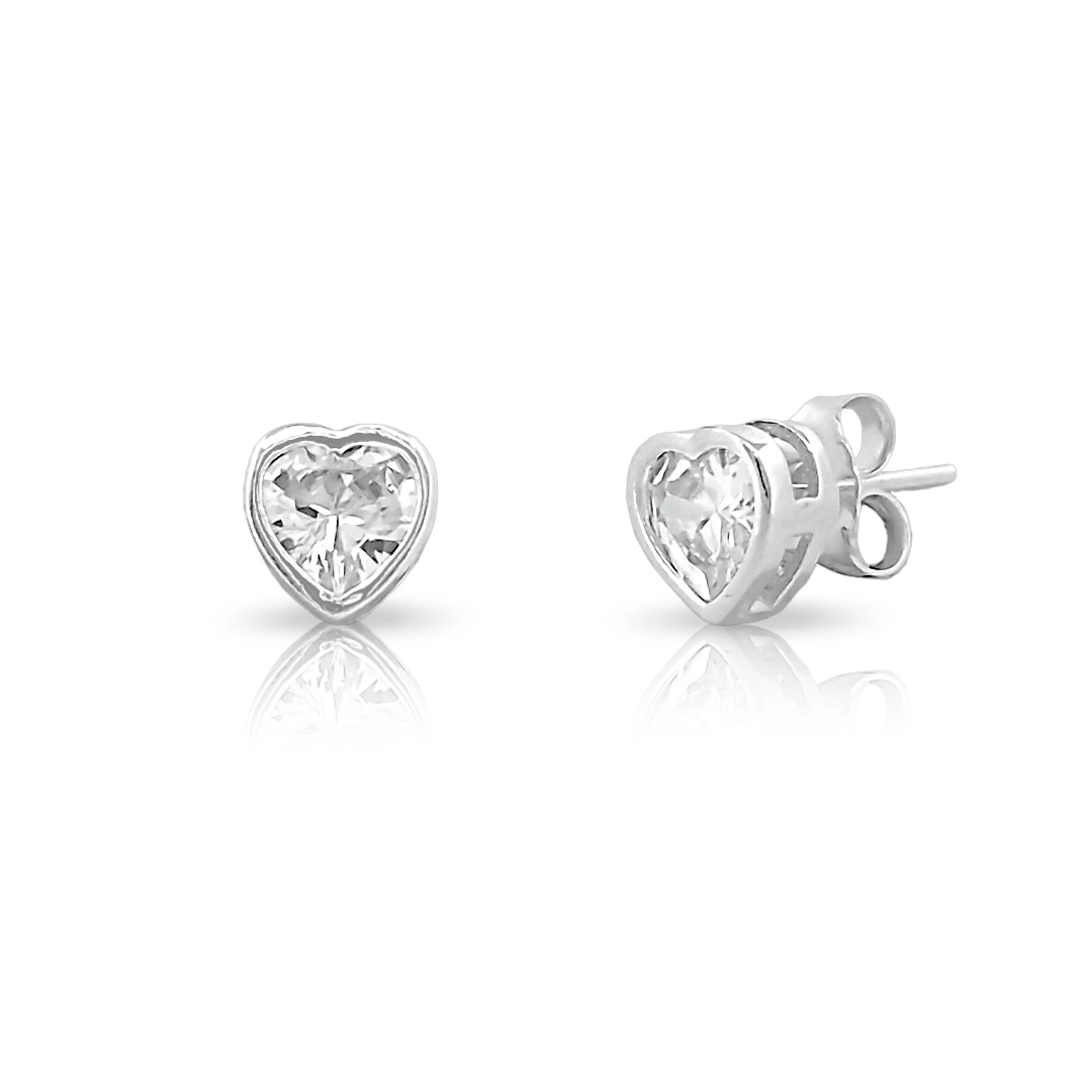 Brinco de Prata Top Coração Com Zircônia Cristal e Cravação Inglesa