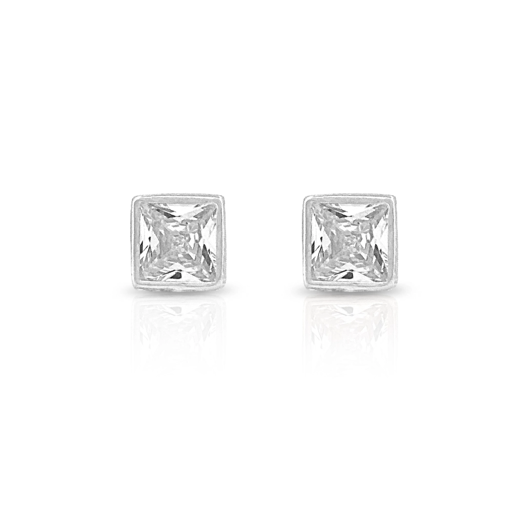 Brinco De Prata Top Quadrado com Cravação Inglesa